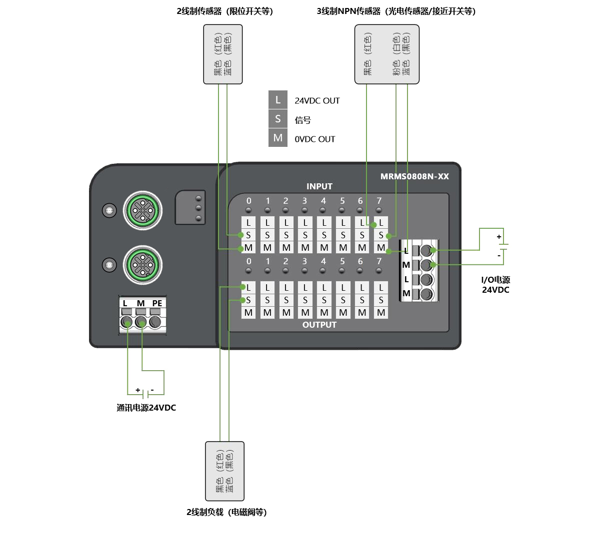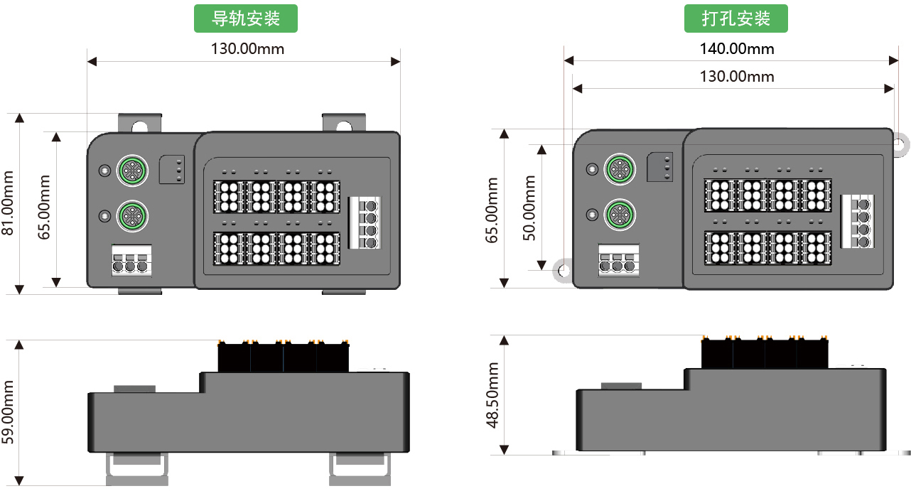 面板式快接線分布式I/O,PROFINET通訊,2xM12,可級聯(lián);數(shù)字量8入8出 NPN,24VDC,0.5A,歐式彈簧端子;導軌安裝&打孔安裝(下單時需備注)