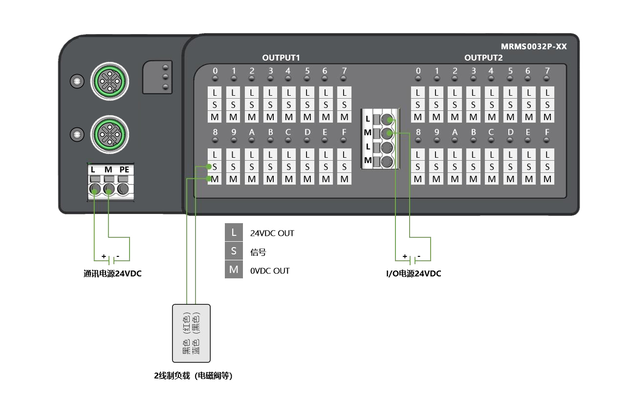 面板式快接線分布式I/O,EtherCAT通訊,2xM12,可級(jí)聯(lián);數(shù)字量32出 PNP,24VDC,0.5A,歐式彈簧端子;導(dǎo)軌安裝&打孔安裝(下單時(shí)需備注)