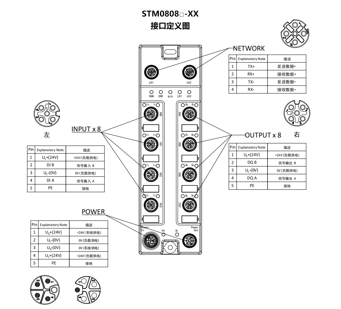 電源接口:Power In:1×M12,L-Code,4P針;Power Out:1×M12,L-Code,4P孔(最大電流16A)